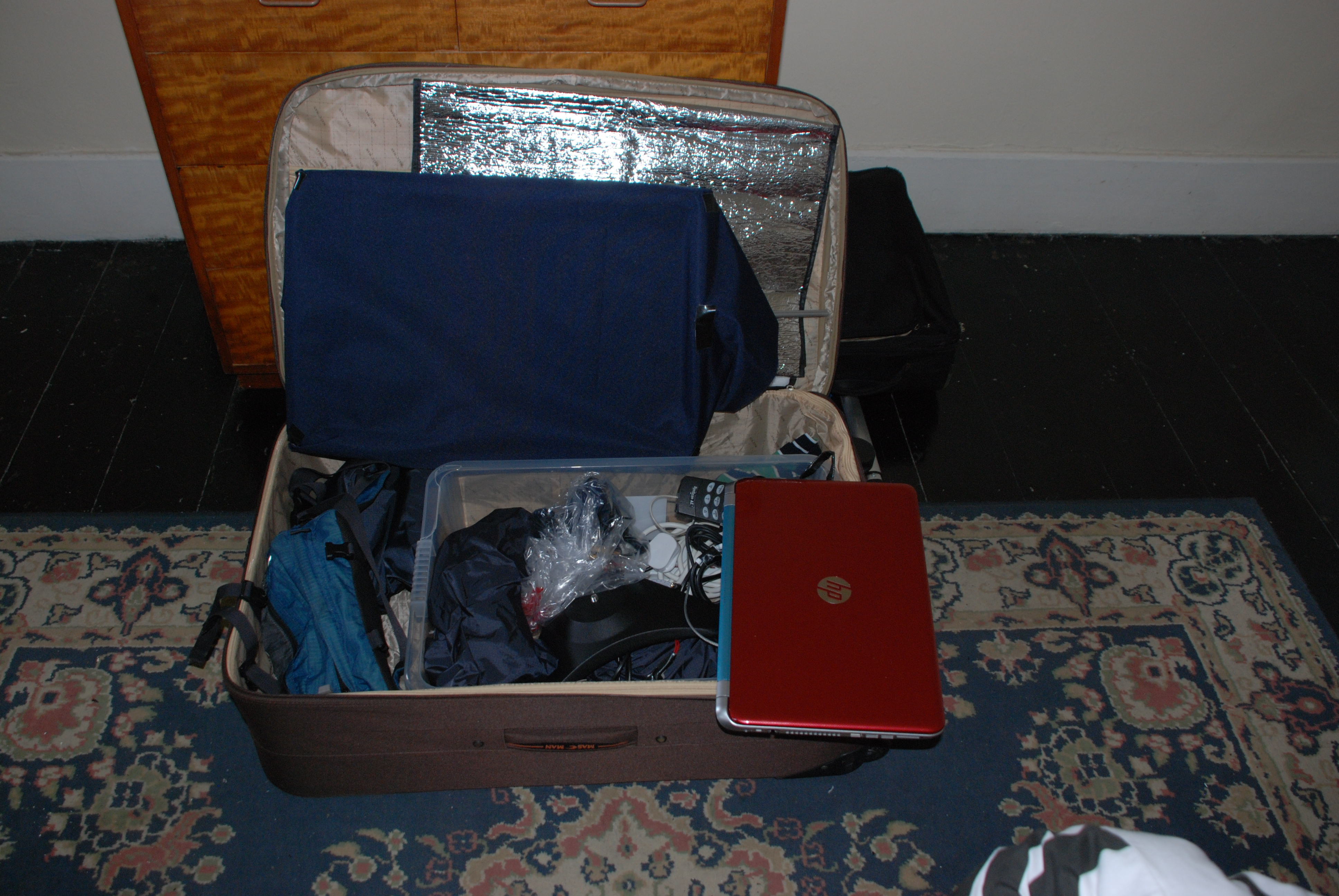 Unpacking all the equipment to set it up at the Botanical Gardens